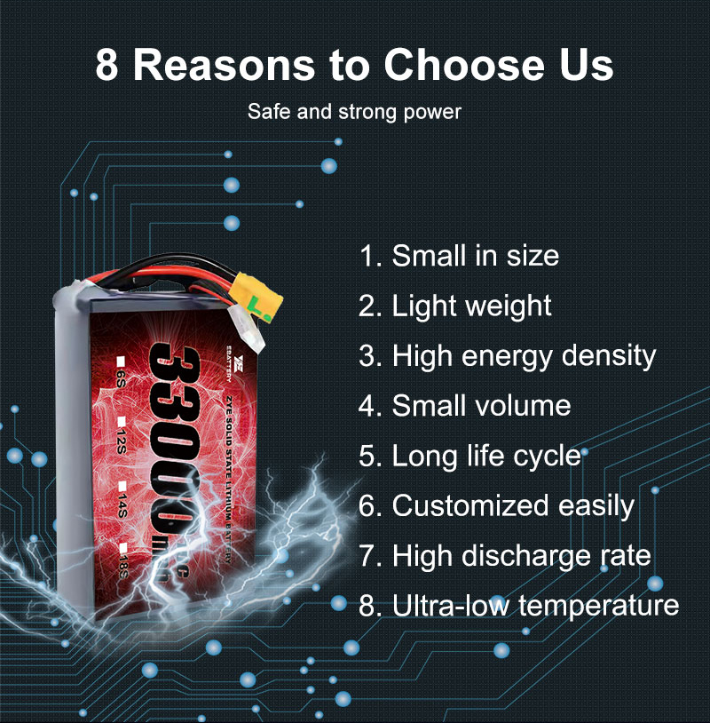 Сонымен қатар, біздіңЖеңіл қатты күйдегі литий батареясы 32000mah 30000mah 30000mah 5C10c 5C10cБілмеген әмбебаптылық пен билікті ұсынады, оны әр түрлі UAV қосымшалары үшін тамаша шешім ұсынады, сізге сенімді энергиямен қамтамасыз етеді, сіз өзіңіздің операцияларыңызды үздіксіз жұмыс істеуіңіз керек.