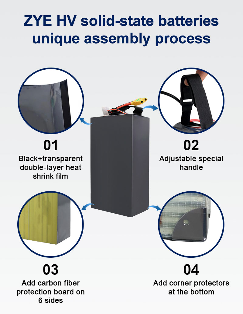 ZYE Ebattery - 18S шығаруға маманданған жетекші өндірушіЖартылай қатты литий-ионды батарея, соның ішінде дрондар, катерлер, электромобильдер, және басқалармен байланысты кең ауқымға арналған. Біздің жоғары вольтты (HV) қатты күйдірілген батареялар, ерекше төзімділік пен сенімділік ұсынатын UAV және дрондардың талап етілетін талаптарын қанағаттандыру үшін жобаланған. Бұл алдыңғы қатарлы батареялар әртүрлі қиын ортада оңтайлы өнімділікті қамтамасыз етуді қамтамасыз етеді. Коммерциялық, өндірістік, өнеркәсіптік немесе рекреациялық пайдалану үшін, біздің батареяларымыз келесі буынды қосымшаларды қолдау үшін қажетті өнімділік пен беріктігін жеткізеді, бұл оларды тиімді, жоғары сапалы энергия шешімдерін іздейді.